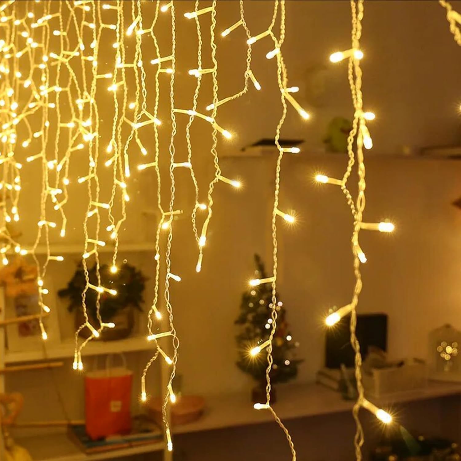 Eiszapfen Lichtervorhang 5m x 0,4/0,5/0,6m Wellenlänge mit 216 LEDs, Fernbedienung, Durchsichtig Kabel, Warm Licht, Verbindbar 40M, für Außen- Standardlänge: 5... Lesen Sie mehr