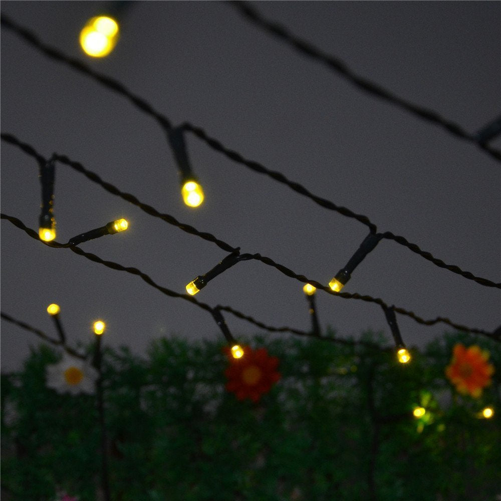 Solar Lichterkette 20M mit 200 LEDs, 8 Programmen, Schwarzes Kabel, Warm Licht, für Außen