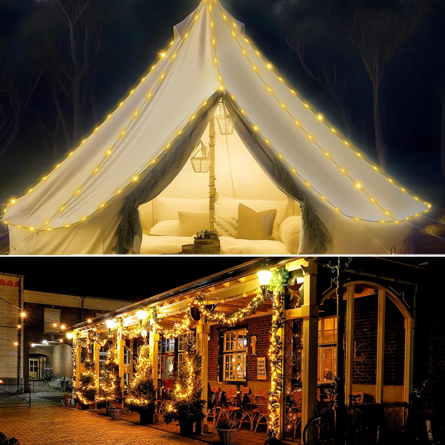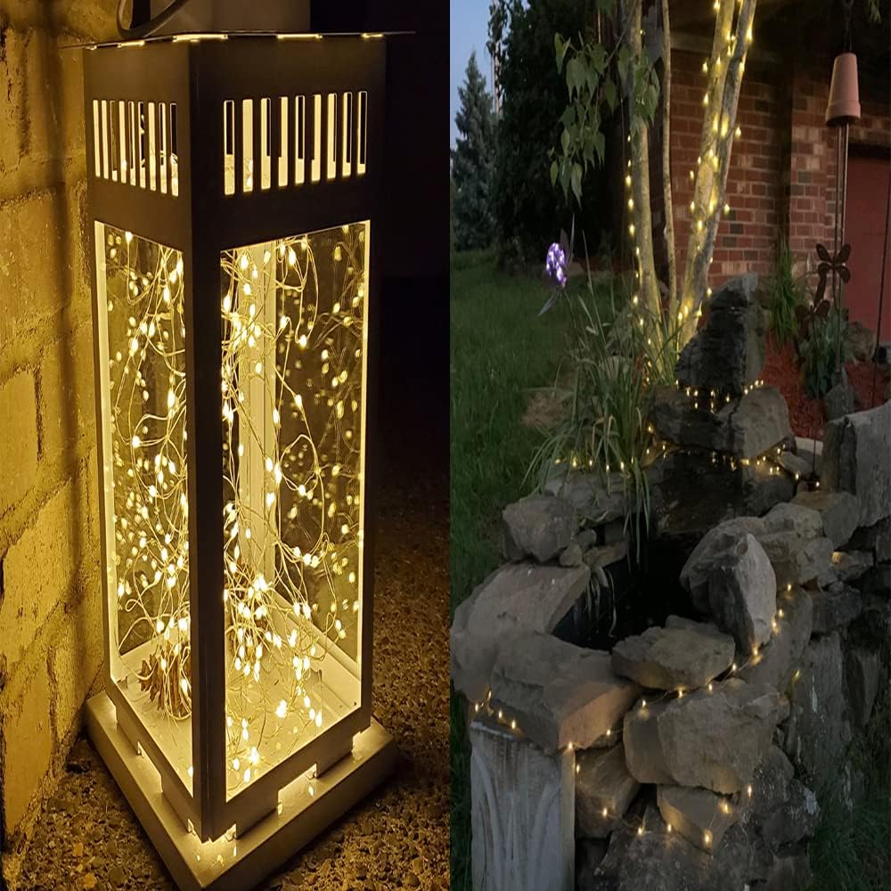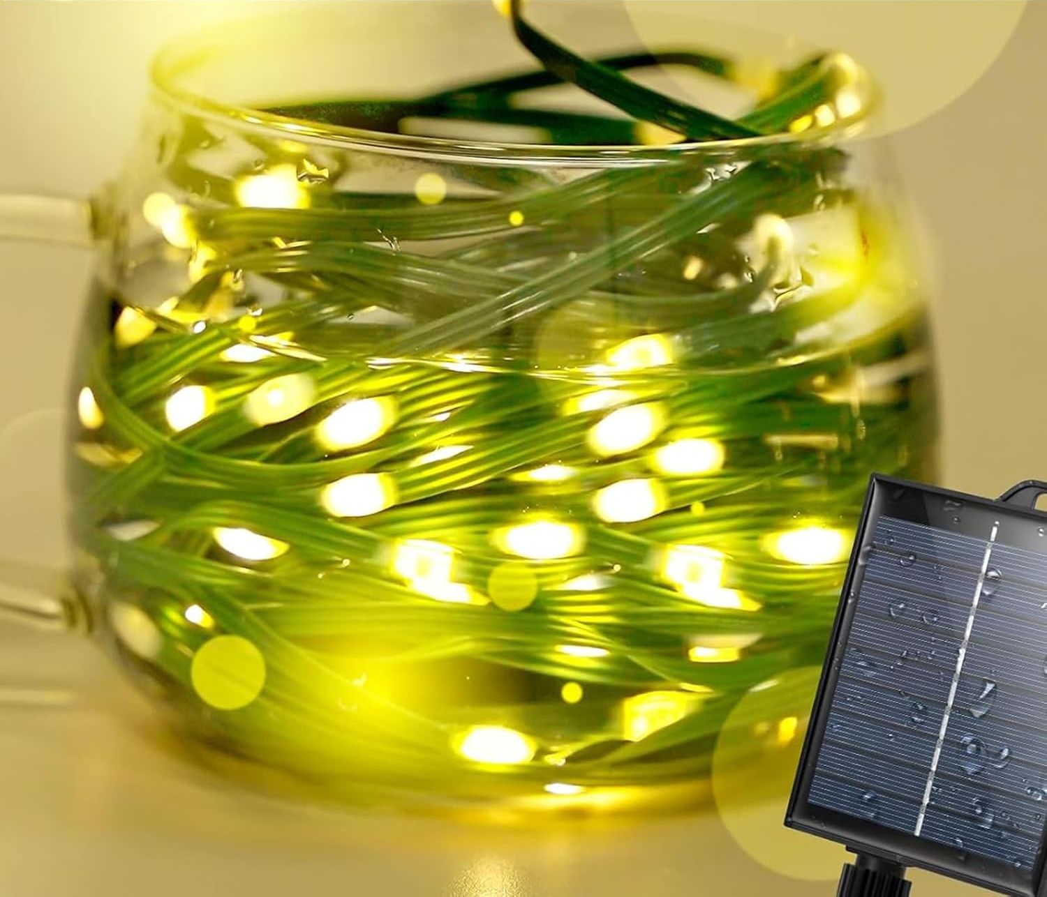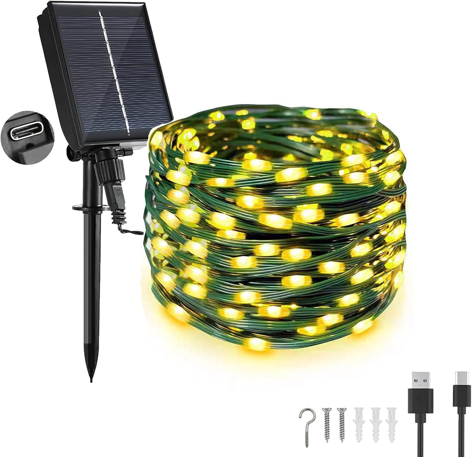 Solar Lichterkette 20M mit 200 Mini-LEDs Gründraht, 8 Programmen, USB Laden, Warm Licht, für Außen