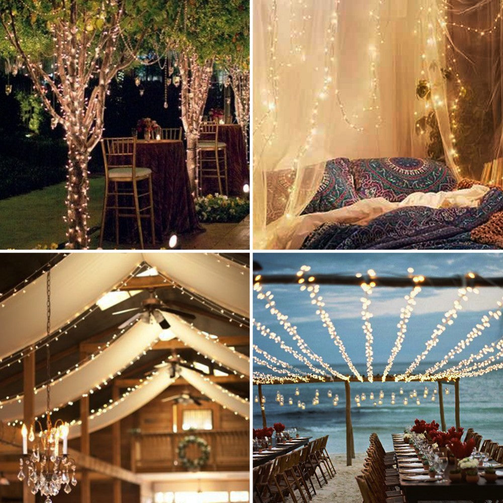 Solar Lichterkette 20M mit 200 Mini-LEDs Gründraht, 8 Programmen, USB Laden, Warm Licht, für Außen - Standardlänge: 20 m (+... Lesen Sie mehr