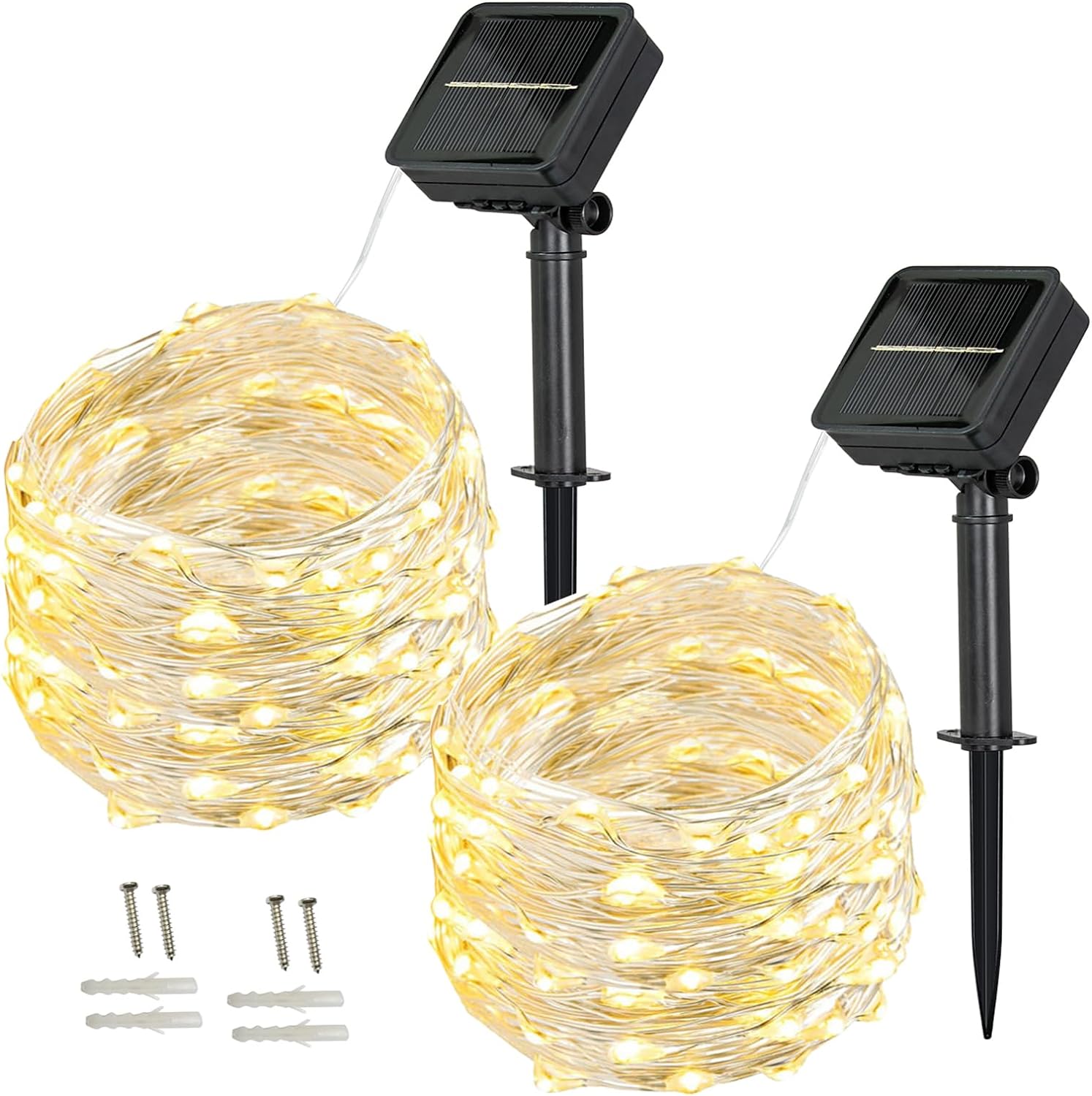 Solar Lichterkette 20M mit 200 Mini-LEDs Silberdraht, 8 Programmen, Warm Licht, für Außen - Standardlänge: 20 m (+ 2 m... Lesen Sie mehr
