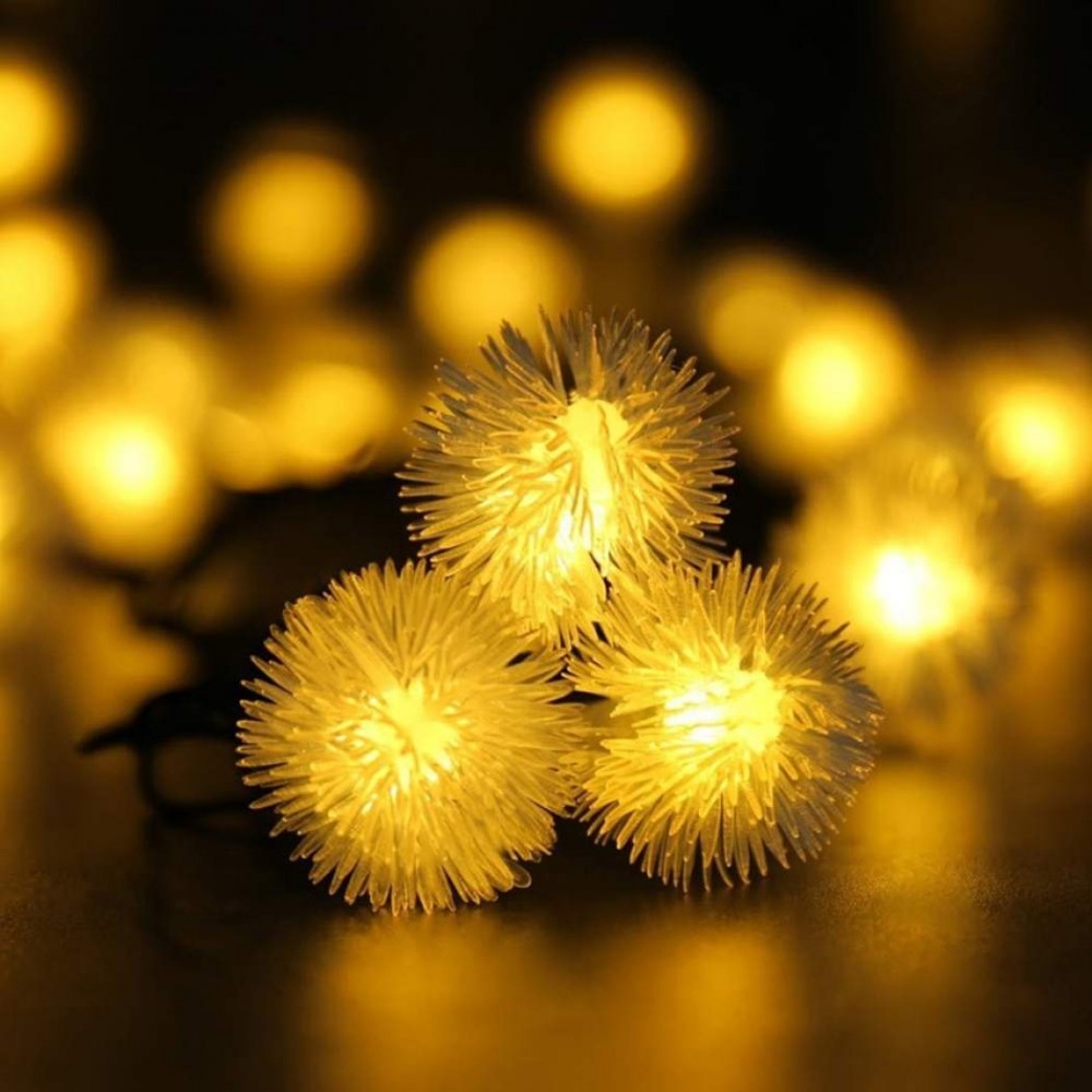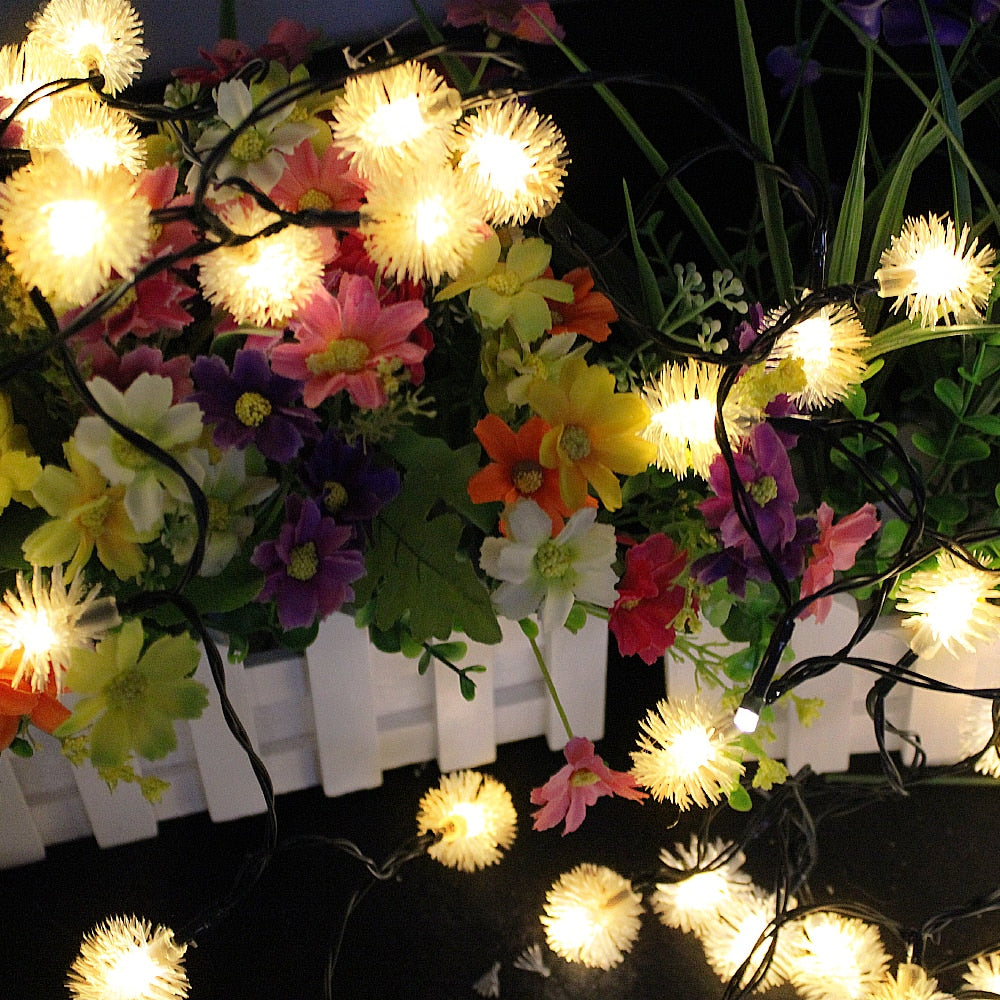 Solar Lichterkette 3M mit 20 Löwenzahn-LEDs, Dunkelgrün Kabel, Warm Licht, für Außen