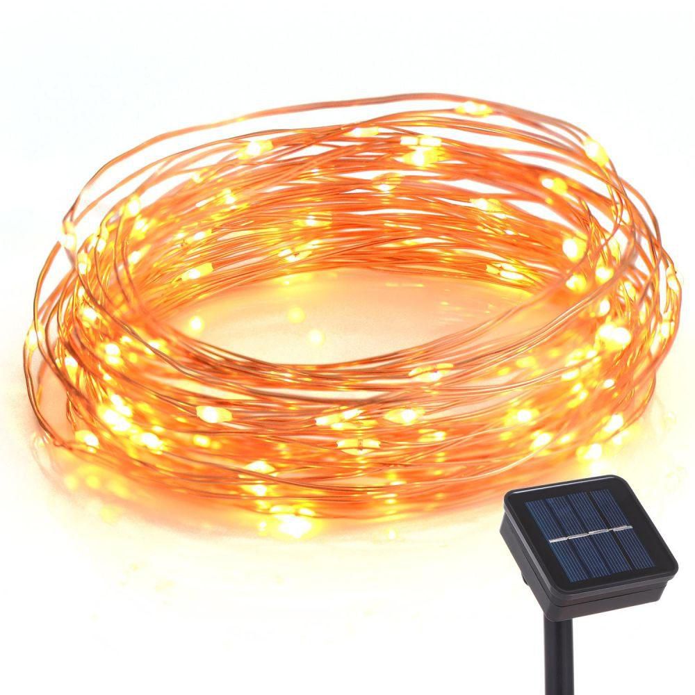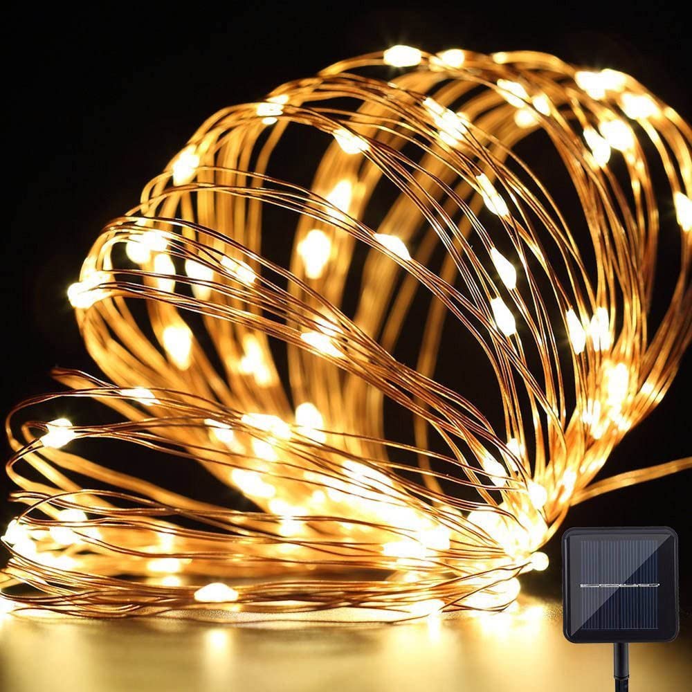 Solar Lichterkette 5M mit 50 Mini-LEDs Kupferdraht, 8 Programmen, Warm Licht, für Außen