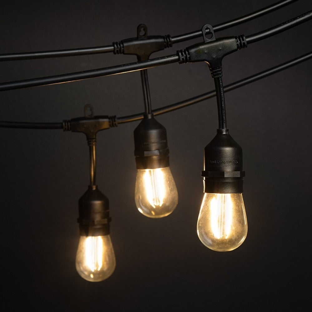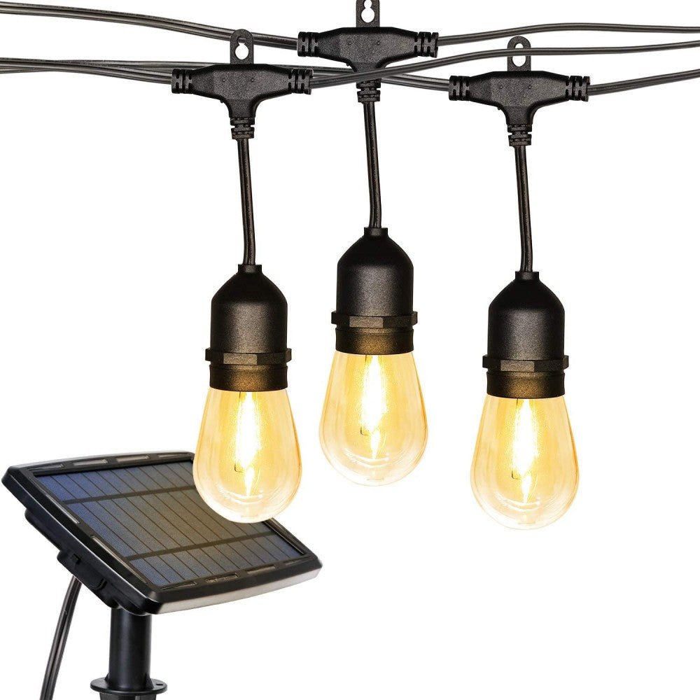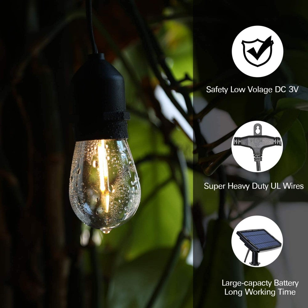Solar Lichterkette 7,6M mit 10 + 2 Birnen LEDs Geschenk, E27 2W, Schwarzes Kabel, Warm Licht, für Außen